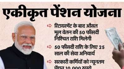 नई दिल्ली । केंद्रीय कैबिनेट की बैठक में शनिवार को कई अहम एलान हुए। इनमें सबसे बड़ा फैसला एकीकृत पेंशन योजना (यूपीएस) को लेकर रहा। सरकारी कर्मचारियों के लिए लाई गई...