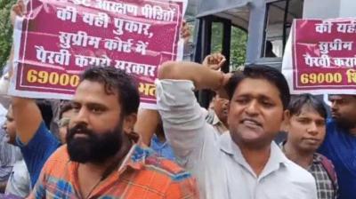 भोपाल में हंगामा: प्रदर्शनकारी शिक्षक भर्ती अभ्यर्थियों को पुलिस ने हिरासत में लिया