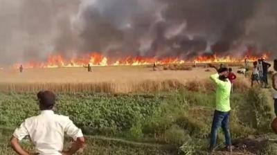 हरदा में खेतों में लगी भीषण आग: 50 एकड़ गेहूं की फसल जलकर राख