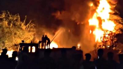 भीषण आग से मचा हड़कंप: बुरहानपुर के प्लास्टिक गोदाम में लगी आग, 20 दमकल मौके पर