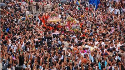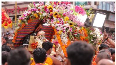 सीएम हेलीकॉप्टर से बरसाते रहे पुष्प, भक्त झूम उठे