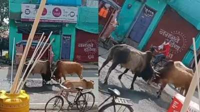 घर में घुसे झगड़ालू सांड़, गेट पर खड़ी महिलाओं के संग टला बड़ा हादसा