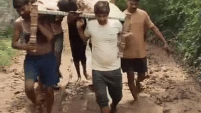 मैहर में बदहाल व्यवस्था: सड़क न होने के कारण एंबुलेंस नहीं पहुंची, ग्रामीणों ने खाट को बनाया स्ट्रेचर