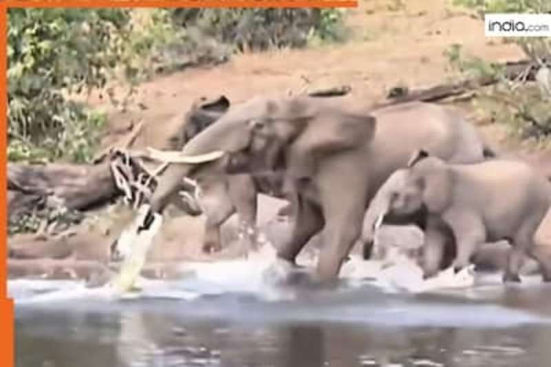 हाथी की सूंड पर मगरमच्छ का हमला, गजराज ने कुछ सेकंड्स में बदल दी कहानी