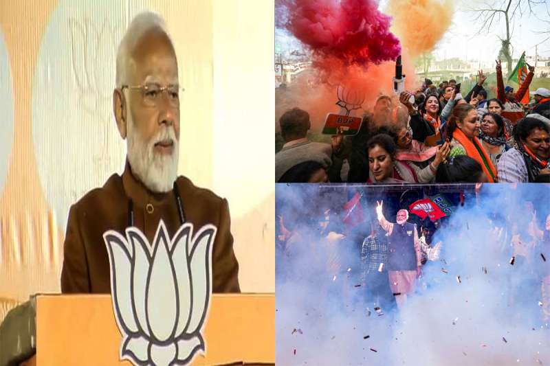 दिल्ली: दिल्ली विधानसभा चुनाव में जीत दर्ज करके भाजपा ने 27 साल का सूखा खत्म कर दिया है। भारी बहुमत से चुनाव में जीत दर्ज करने के बाद भाजपा कार्यकर्ताओं में खुशी की लहर है। जीत के जश्न में प्रधानमंत्री नरेंद्र मोदी भी शामिल हो रहे हैं। वे भाजपा मुख्यालय पहुंच गए हैं। वे यहां कार्यकर्ताओं और दिल्ली की जनता को जीत की बधाई दे रहे हैं।