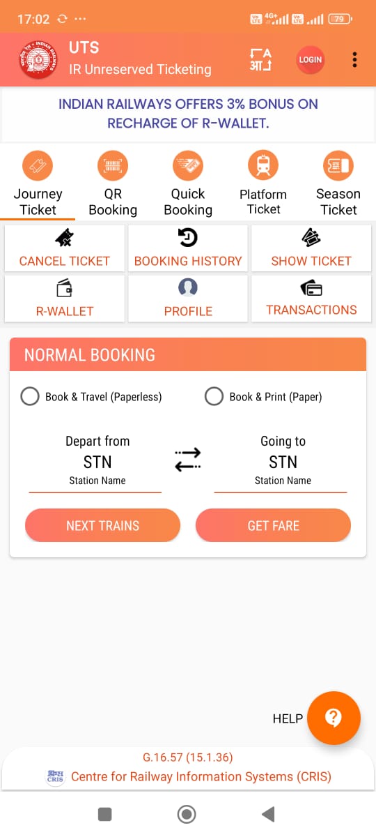 अनारक्षित टिकट बुकिंग।