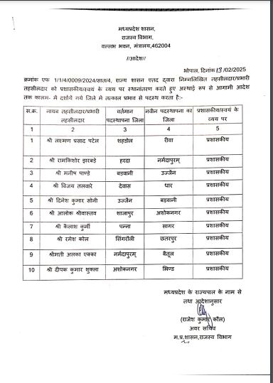 नायब तहसीलदारों की नई पदस्थापना