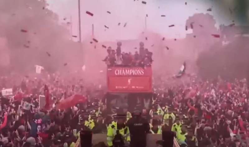 लंदन: ब्रिटेन के लिवरपूल शहर से एक दर्दनाक घटना सामने आई है. यहां प्रीमियर लीग चैंपियनशीप के बाद फुटबाल प्रशंसक सड़क पर जीत का जश्न मना रहे थे. इस दौरान हजारों की संख्या में लोग सड़कों पर उतरे हुए थे. इसी बीच एक शख्स अचानक से कार लेकर भीड़ के बीच पहुंच गया. उसने भीड़ में मौजूद लोगों के ऊपर कार चढ़ा दी. इस घटना में कई लोग घायल भी बताए जा रहे हैं. हालांकि पुलिस ने भीड़ पर कार चढ़ाने वाले आरोपी को गिरफ्तार कर लिया है.
