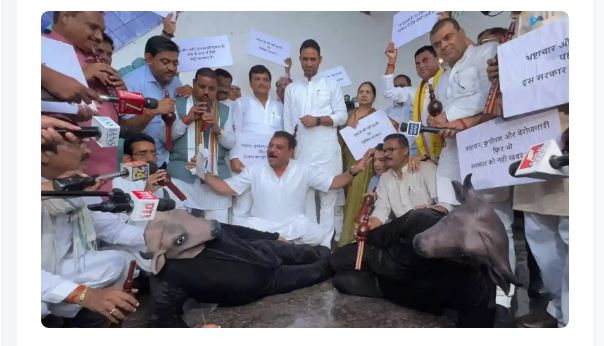 म.प्र. मानसून सत्र में कांग्रेस ने भैंस के सामने बीन बजाकर राजनीतिक प्रदर्शन किया