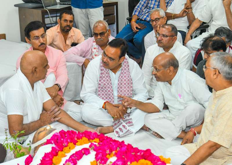 जयपुर, 30 जुलाई। मुख्यमंत्री श्री भजनलाल शर्मा ने बुधवार को जयपुर के मालवीय नगर स्थित पाथेय भवन पहुंचकर राष्ट्रीय स्वयंसेवक संघ के वरिष्ठ प्रचारक एवं पाथेय कण के संरक्षक श्री माणकचंद के निधन पर शोक व्यक्त किया।
