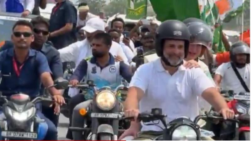 यात्रा के दौरान राहुल ने थामी बाइक की कमान, प्रियंका बनीं साथी