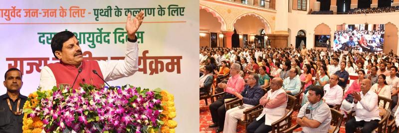 भोपाल। 10वें राष्ट्रीय आयुर्वेद दिवस पर मिन्टो हॉल, भोपाल में आयोजित राज्य स्तरीय कार्यक्रम आयुष चिकित्सा क्षेत्र के लिए ऐतिहासिक रहा। इस कार्यक्रम में मुख्य अतिथि के रूप में मध्यप्रदेश के मुख्यमंत्री *डॉ. मोहन यादव* शामिल हुए, जबकि अध्यक्षता *स्कूल शिक्षा मंत्री श्री इंदर सिंह परमार* ने की। कार्यक्रम में प्रमुख सचिव, अपर सचिव, आयुक्त तथा आयुष विभाग के वरिष्ठ अधिकारी भी उपस्थित रहे। कार्यक्रम के दौरान मुख्यमंत्री ने *राजपत्रित आयुष चिकित्सा अधिकारी संघ, मध्यप्रदेश* की सभी बहुप्रतीक्षित मांगों को पूरा करने की घोषणा की। इन घोषणाओं ने प्रदेशभर के आयुष चिकित्सकों में अभूतपूर्व उत्साह का संचार किया।
