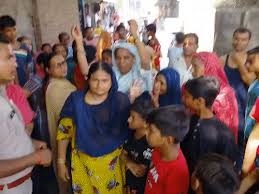 हाथ में लाठी लेकर विरोध प्रदर्शन कर रही थी महिलाएं
