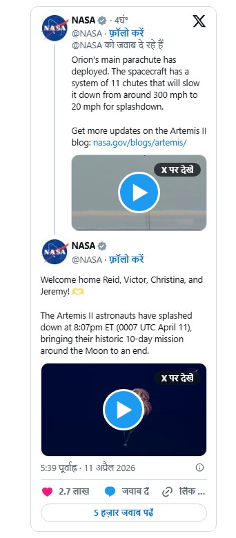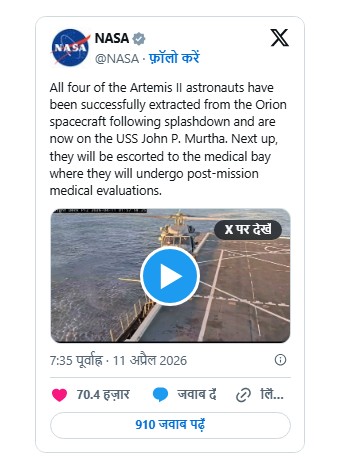 चंद्र मिशन में बड़ी कामयाबी: NASA Artemis I Mission ने पृथ्वी पर की सुरक्षित लैंडिंग