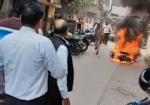 चलती बाइक में अचानक भड़की आग, जिला न्यायालय क्षेत्र में अफरा-तफरी