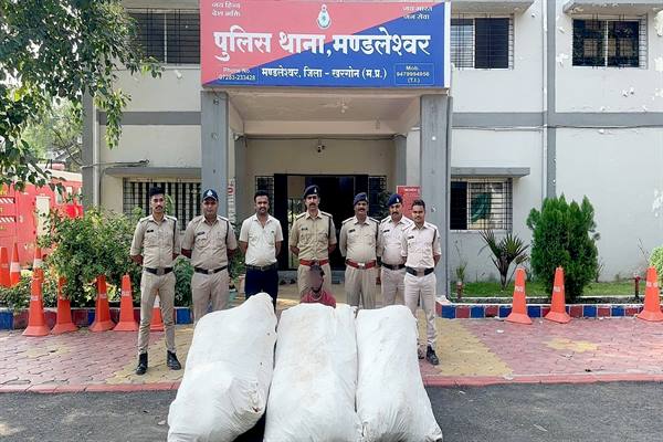 इंदौर जोन इंदौर (ग्रामीण) के पुलिस महानिरीक्षक श्री अनुराग एवं निमाड़ रेंज खरगोन के उप पुलिस महानिरीक्षक श्री सिद्धार्थ बहुगुणा के निर्देशन में नशे के खिलाफ चलाए जा रहे विशेष अभियान के तहत थाना मण्डलेश्वर पुलिस टीम ने एक बड़ी सफलता प्राप्त की है। मुखबिर से प्राप्त सूचना पर ग्राम भकलाया निवासी परसराम पिता रघुराम डावर के खेत में दबिश दी गई। जांच के दौरान कपास की फसल के बीच छिपाकर अवैध रूप से उगाए गए 180 गांजे के पौधे पाए गए, जिनका कुल वजन लगभग 113 किलोग्राम निकला।