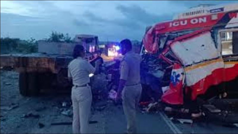 मरीज का रेस्क्यू: दुर्घटना के समय एंबुलेंस में सवार मरीज को पुलिस और सुरक्षा गार्डों की मदद से दूसरे वाहन के जरिए अस्पताल पहुँचाया गया।