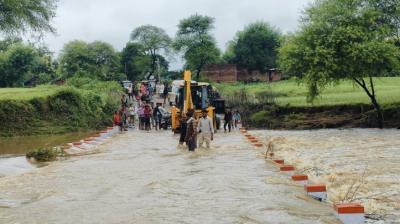 जेसीबी की बकेट से गर्भवती महिला ने पार किया बहता नाला, दूसरी ओर इंतज़ार कर रही थी एम्बुलेंस