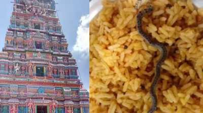 चंद्रचूड़ेश्वर मंदिर में प्रसाद से निकला सांप का बच्चा, तस्वीरें वायरल