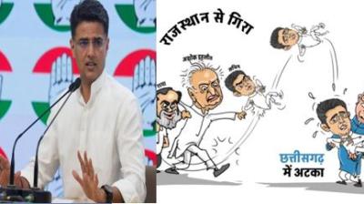 BJP का कार्टून अटैक: राजस्थान से गिरा, छत्तीसगढ़ में अटका