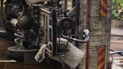 रायपुर-नागपुर हाईवे पर टैंकर हादसा, टायर फटने से पलटा केमिकल ट्रक