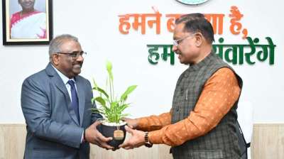 रायपुर, राज्यपाल रमेन डेका से आज राजभवन में डॉ. सी.व्ही. रमन विश्वविद्यालय के कुलाधिपति डॉ अरूण आर जोशी ने सौजन्य भेंट की। डेका ने यू.सी.जी के गाइडलाइन के अनुसार कार्य...