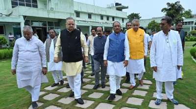 विधानसभा अध्यक्ष डॉ. रमन सिंह, मुख्यमंत्री विष्णु देव साय, नेता प्रतिपक्ष डॉ. चरणदास महंत, उपमुख्यमंत्री अरुण साव कार्यमंत्रणा समिति की बैठक में जाते हुए