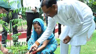 मुख्यमंत्री ने सपरिवार अपने निवास परिसर में रोपा नीम, रुद्राक्ष और चीकू का पौधा