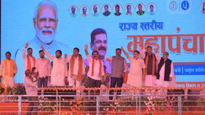 महापंचायत, पंचायत प्रतिनिधि सम्मेलन 2024 में शामिल होने साइंस कालेज ग्राउंड पहुंचे केंद्रीय पंचायती राज्य मंत्री कपिल मोरेश्वर पाटिल